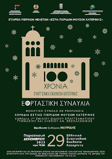 Παρασκευή 29 Δεκεμβρίου 2023 στην Ευαγγελική εκκλησία Κατερίνης στις 19:00.